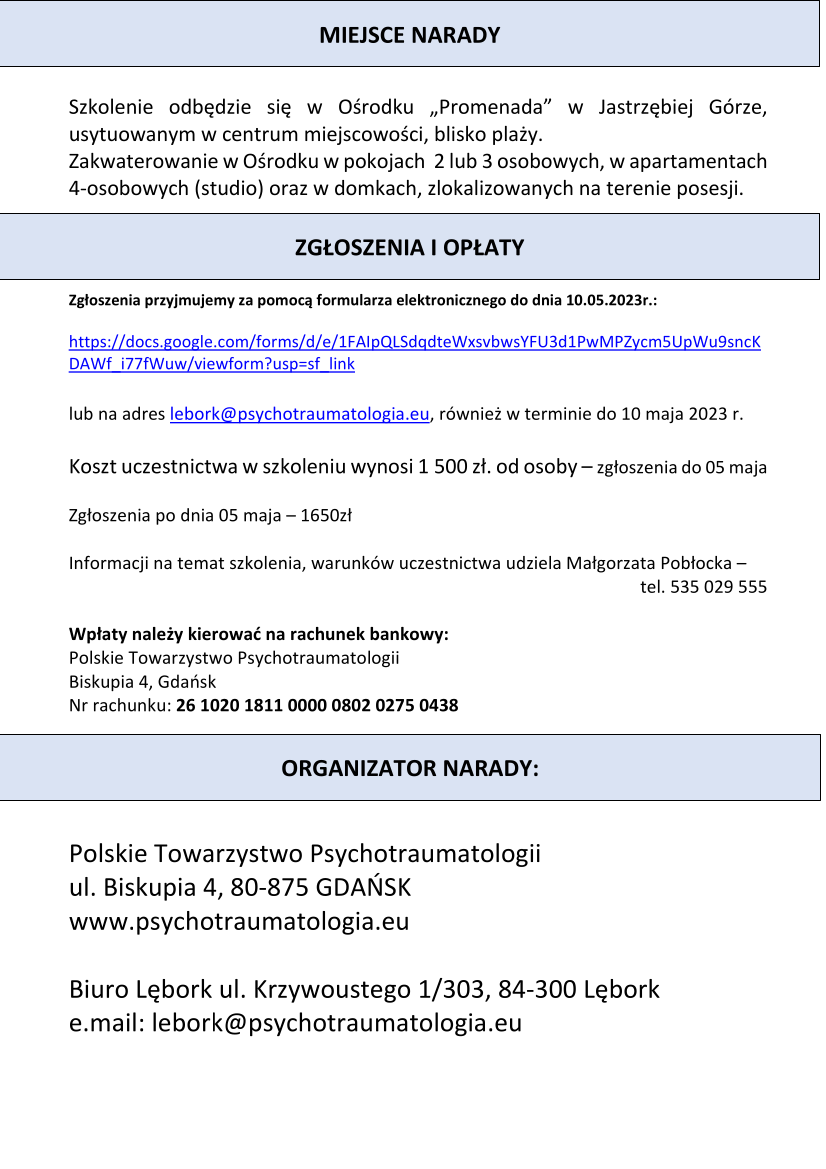 Polskie Towarzystwo Psychotraumatologii zaprasza na