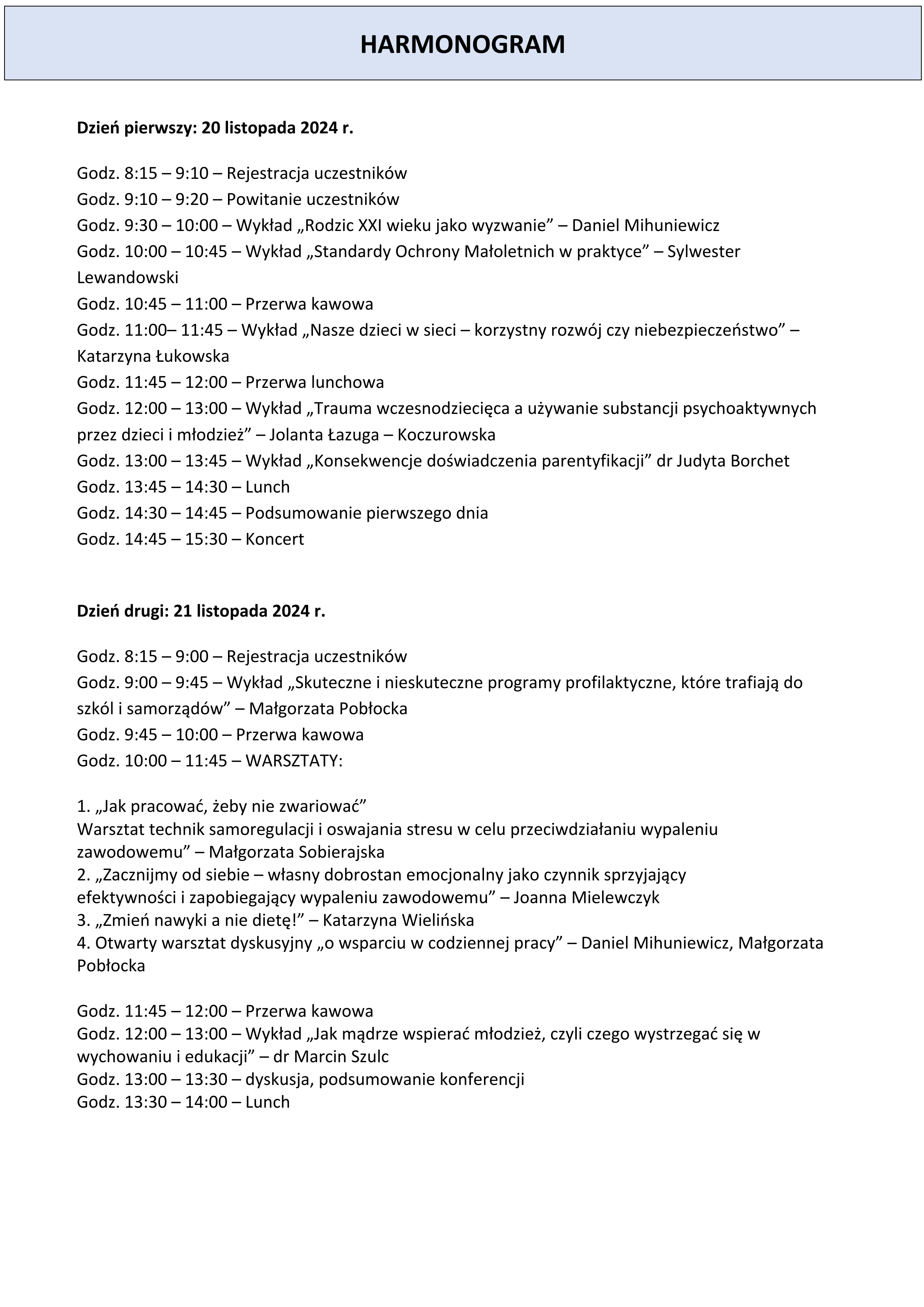 która odbędzie się 20-21 listopada 2024 roku